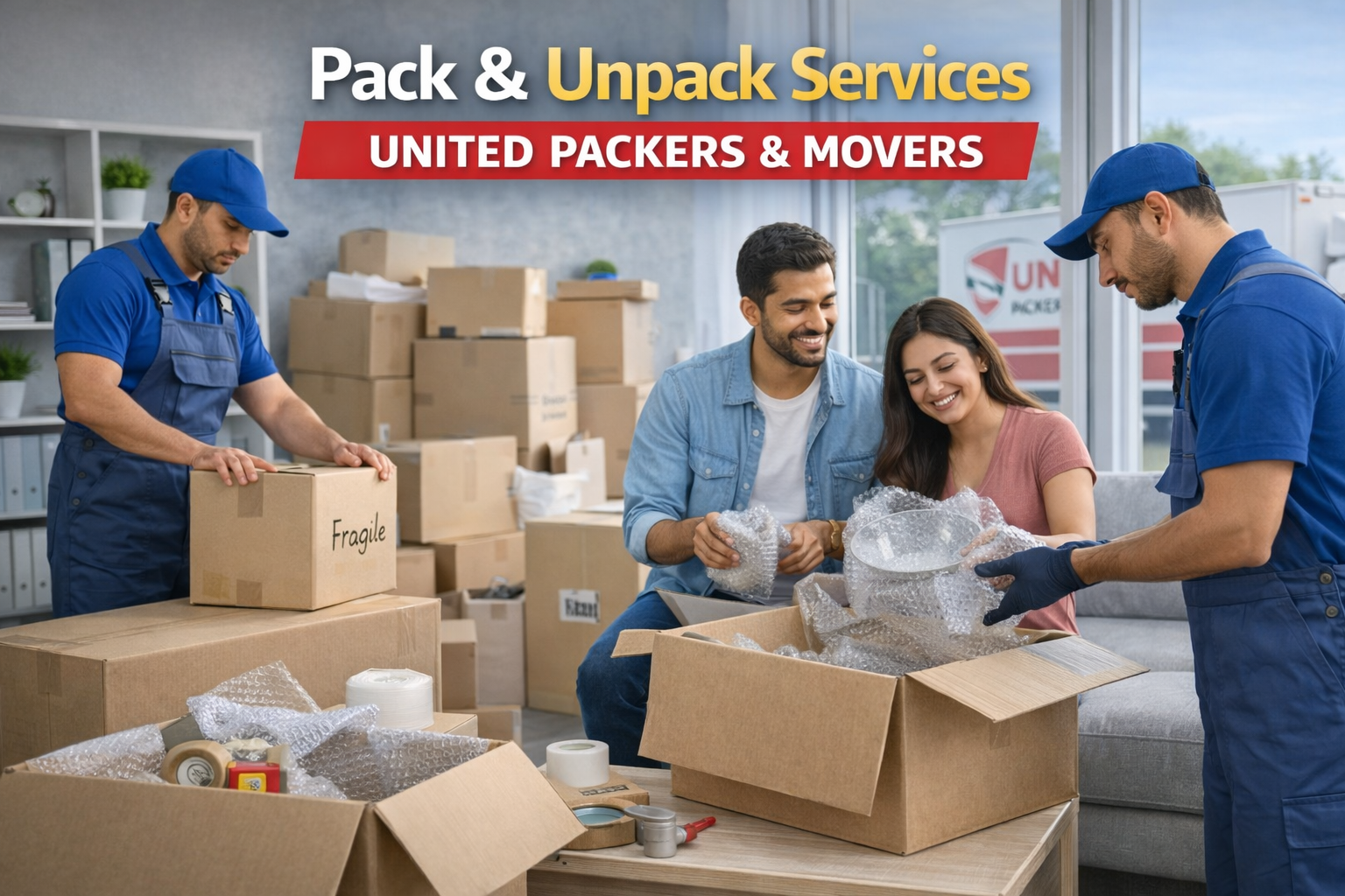 At United Pro Packers and Movers, we provide professional and reliable pack and unpack services to make your relocation simple, fast, and stress-free. Whether you are moving your home, office, or commercial space, our expert team ensures every item is packed securely, transported safely, and unpacked neatly at your new location.